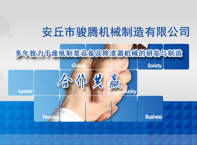 安丘市骏腾机械制造有限公司位于中国风筝之都潍坊南35公里,座落在青云湖畔,是具有活力的安丘市兴安街道工业园。依托风筝之都完善的工业基础和发达的机械制造业,公司致力于废纸制浆设备及除渣器机械的研究与制造。经过多年的艰苦创业与生产经验,并结合国内外先进技术,已经发展成为中国国内主要的废纸制浆设备生产厂家。 公司始终坚持以市场需求为先导,客户利益为目标,严格执行国家技术及行业标准,保证产品品质,提供专业服务,用专业的产品与真诚的客户实现共同发展,是我们终生奋斗的目标。让我们携手共进,创造美好明天...